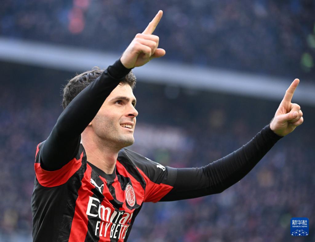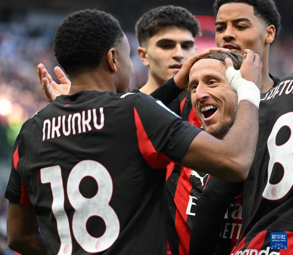 12月28日,AC米兰队球员普利希奇(中)庆祝进球。