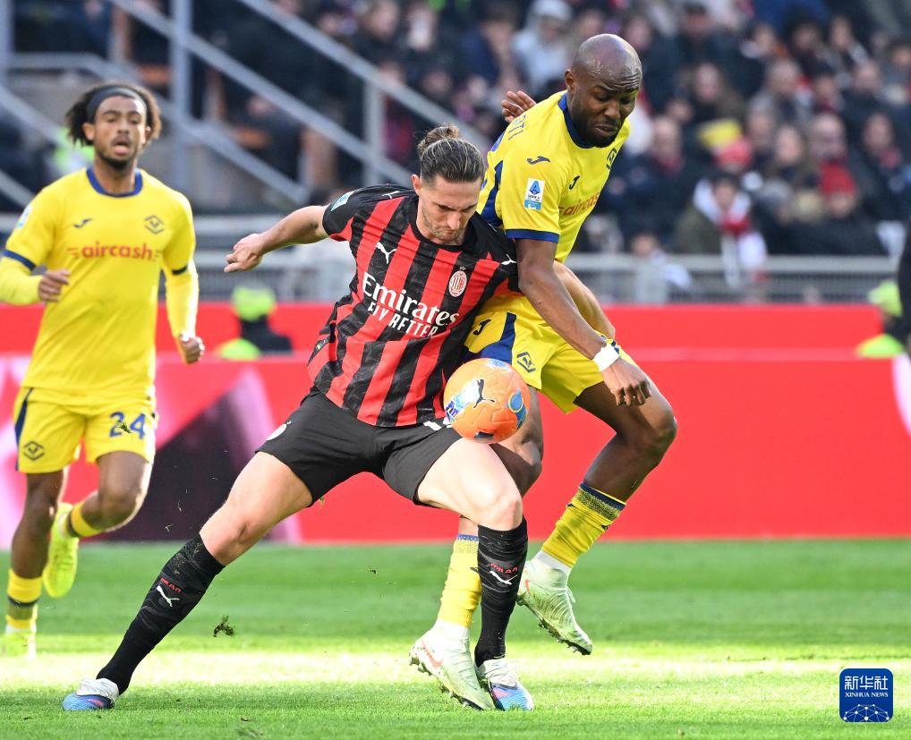 12月28日,AC米兰队球员普利希奇(右)与维罗纳队球员尼亚斯在比赛中拼抢。